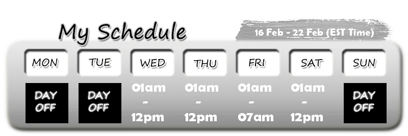 Prljavi razgovor, Pokazivanje, Fetiš stopala, Spanking, Striptiz, Pokazivanje mišića, Ocjenjivanje kurca, Erotski ples, Prstenjanje, Ponižavanje, Masturbacija, Pseća poza, Pumpa, Ejakulacija, Drkanje, Show s uljem, Orgazam, SPH, Dildo ili vibrator